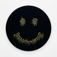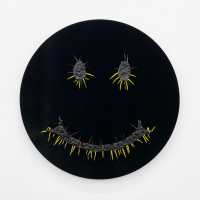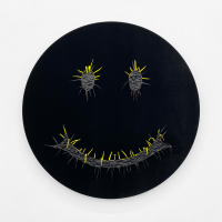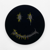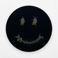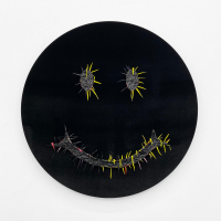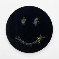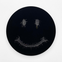 Velvet Tondo # 1-8 : Dehydrated pigment relief on stretched velvet on wood panel 46 in x 46 in x 2 in
