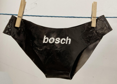 Her own formulated ink is poured into sheets and dried, then folded, draped, hung, cut, woven, patchworked and may be fused to itself. The medium is organic - animal gelatin - and may still be used as pigment using water and heat.